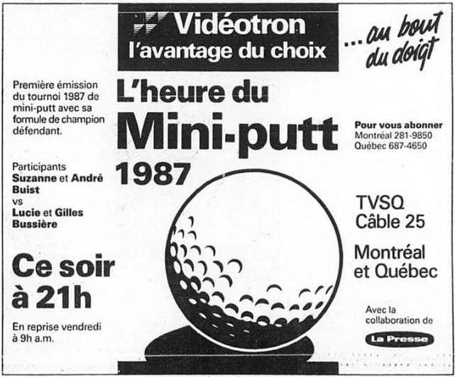 TVSQ: L’heure du mini-putt 1987-05-30 (L’heure du mini-putt Television) gagné par Suzanne Buist/André Buist