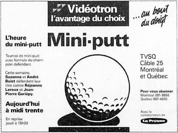 TVSQ: L’heure du mini-putt 1987-08-01 (L’heure du mini-putt Television) gagné par Suzanne Buist/André Buist
