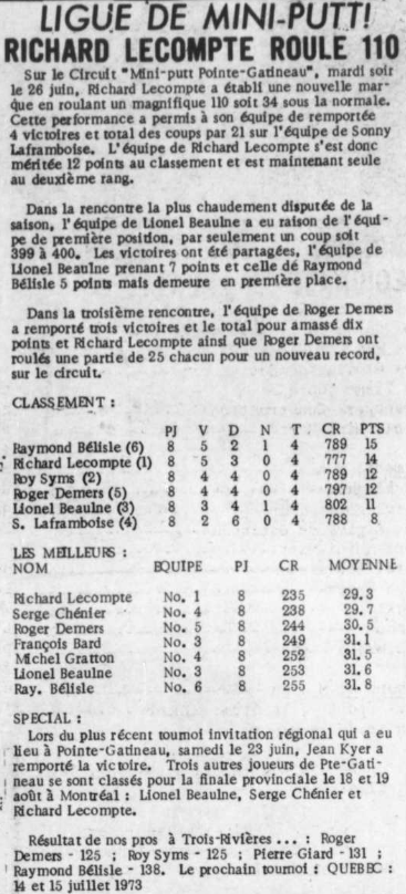 Sujet: Deuxième semaine d'activités de la ligue de Mini-Putt Pointe-Gatineau