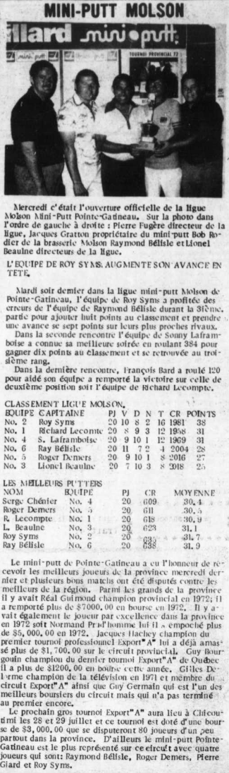 Sujet: Molson commandite la ligue de Mini-Putt Pointe-Gatineau