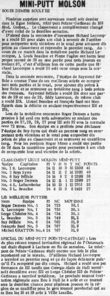 Sujet: Changements au classement de la ligue de Mini-Putt Pointe-Gatineau
