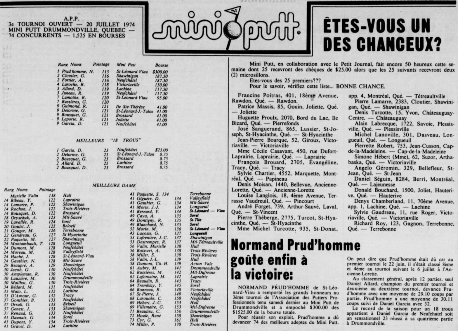 Sujet: Prud'homme remporte le 3e tournoi APP à Drummondville. Daniel Garcia joue un pointage record de 23.