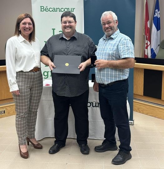 Le directeur des opérations du CPP a eu le plaisir de voir son travail reconnu par sa ville natale. Au cours de cette cérémonie civique, les personnes honorées ont reçu un certificat de reconnaissance et une épinglette officielle de la Ville de Bécancour. |