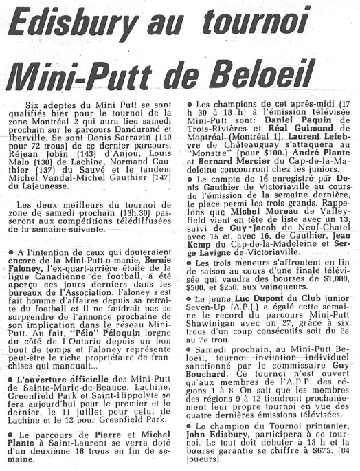 Mini-Putt: Régional - Montréal 2 (1972-07-15) à Dandurand gagné par Gilles Gauthier/Normand Gauthier