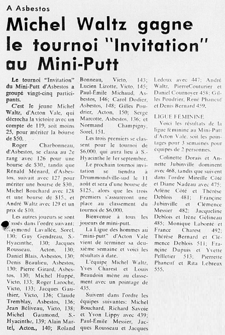 Mini-Putt: Régional - Cantons de l'est (1973-07-28) à Asbestos gagné par Michel Waltz
