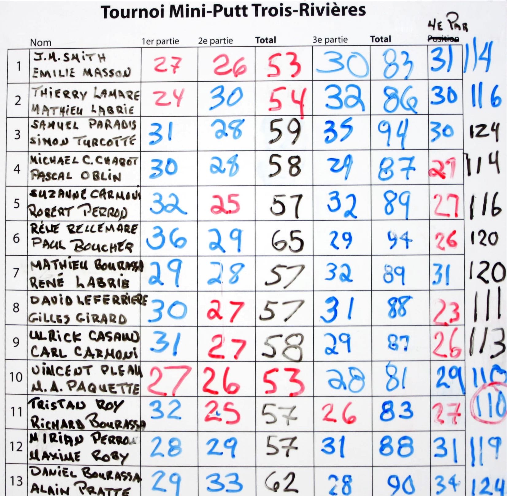 Mini-Putt: Tournoi de fermeture (2015-09-26) à Trois-Rivières gagné par Tristan Roy/Richard Bourassa