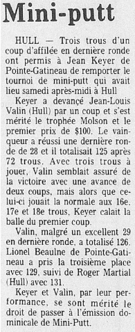 Mini-Putt: Régional - Outaouais (1972-07-15) à Hull gagné par Jean Kyer/Jean-Louis Valin