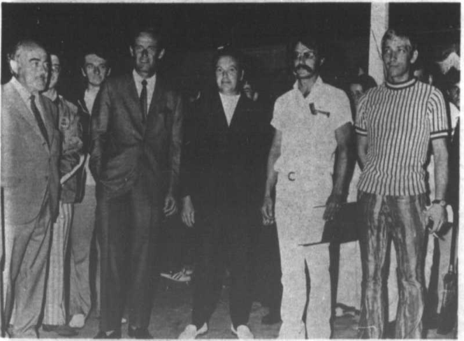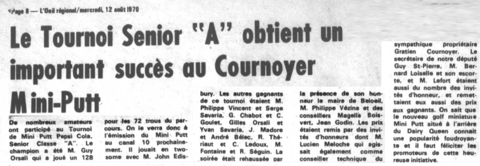 📝Premier tournoi documenté qui se soit déroulé ailleurs qu'au Jean-Talon. Ceci constituerait le 4e et dernier tournoi éliminatoire, qualifiant Guy Orsali pour la 4e et dernière position télévisée. Sur la première photo, de gauche à droite: le propriétaire M. Cournoyer, Jean Benoît, Guy Orsali, Jean Goulet? (moustache), John Edisbury ou autre?