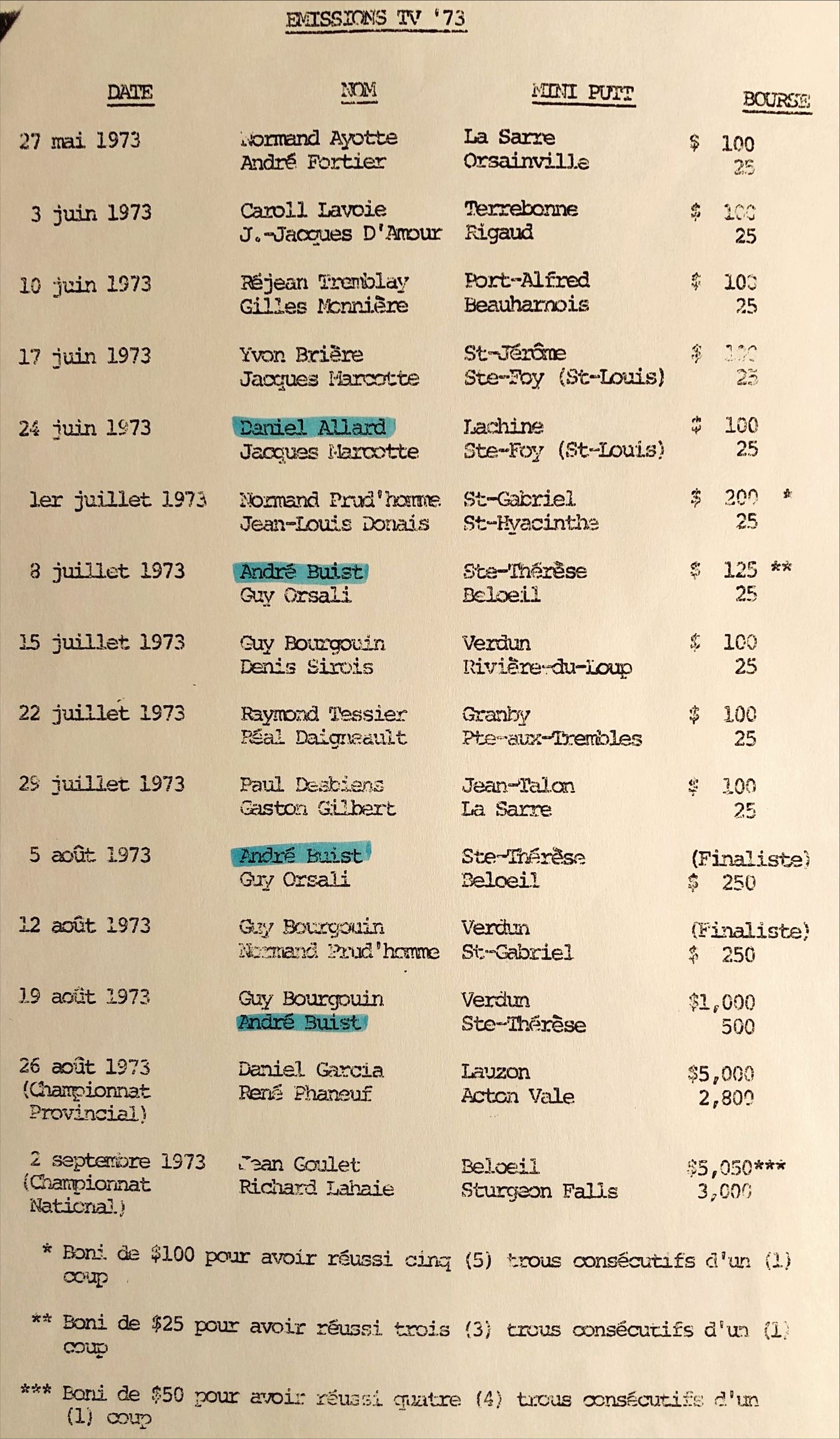 Liste des émissions et des résultats de 1973