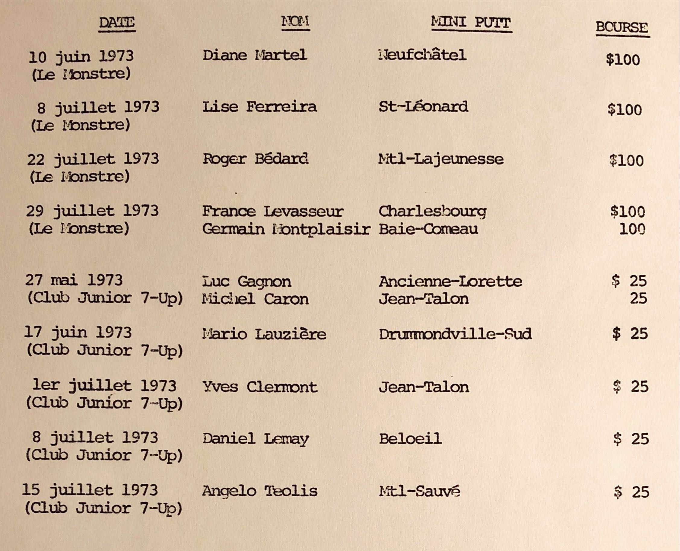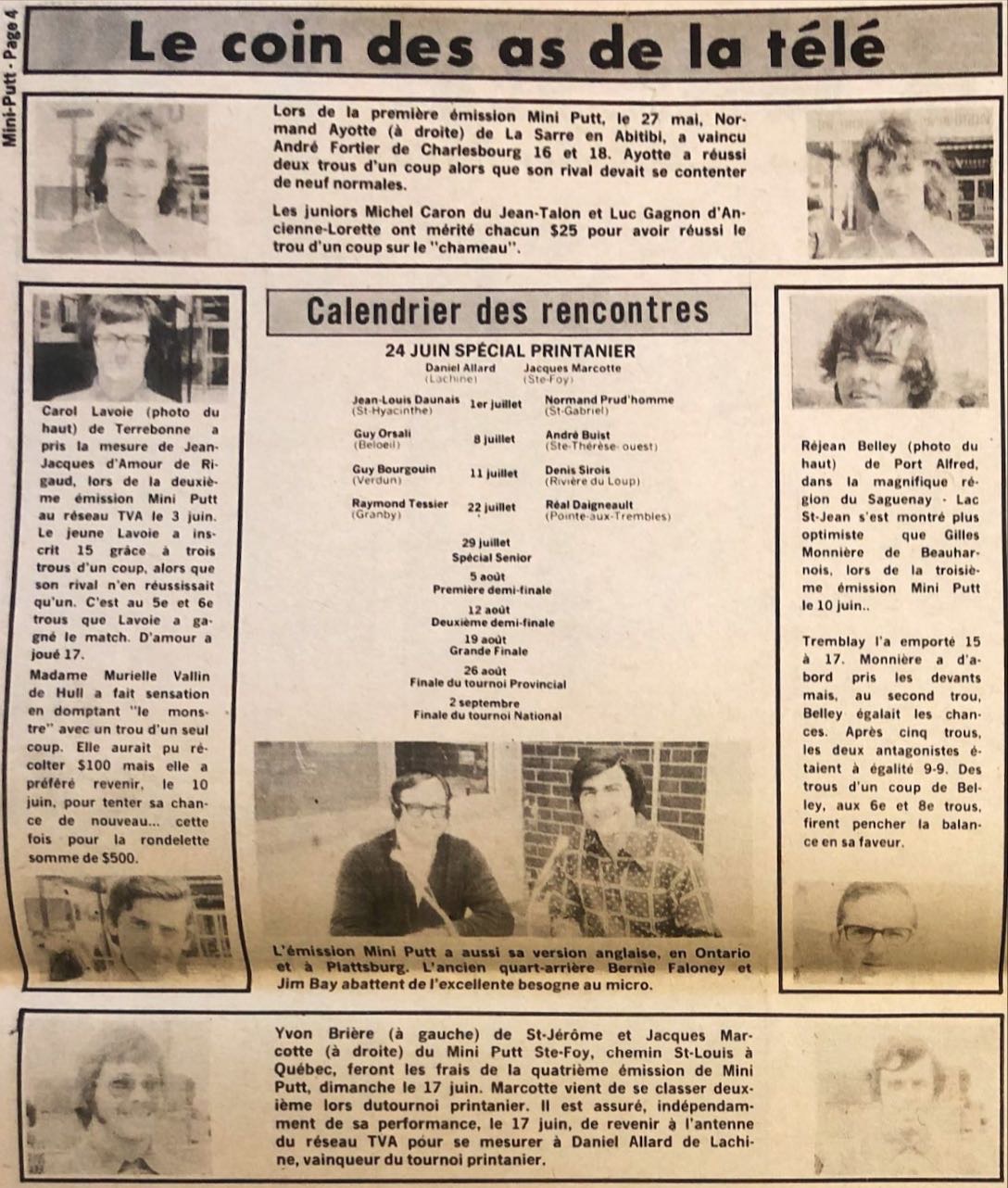 Mini-Putt: Télévision (1973-08-19) à Jean-Talon gagné par Guy Bourgouin