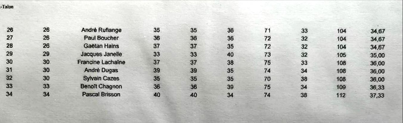 Suite du classement