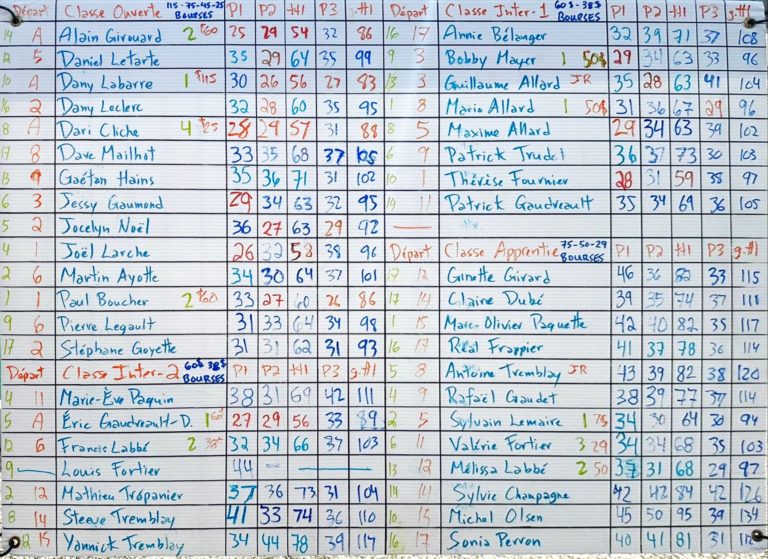 2025-08-09 à Thetford Mines dans la classe Intermédiaire-2: Francis Labbé en 2e position et Éric Gaudreault-Drapeau premier avec un pointage de 89 et une présence dans le groupe de tête après le reclassement!