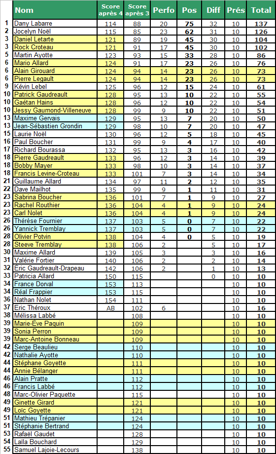 Classement de la Coupe des Bâtisseurs pour la Coupe du Québec