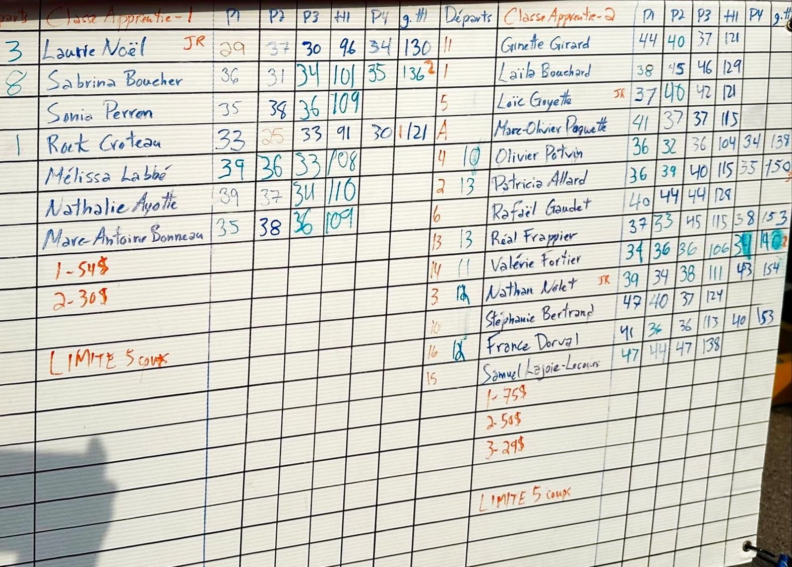 2025-08-23 Coupe du Québec à Vanier: dans la classe Apprentie-1, Laurie Noël (2e), Sabrina Boucher (3e) et Rock Paquin (1er). Ce dernier a été l'auteur d'un pointage de 25 !!!