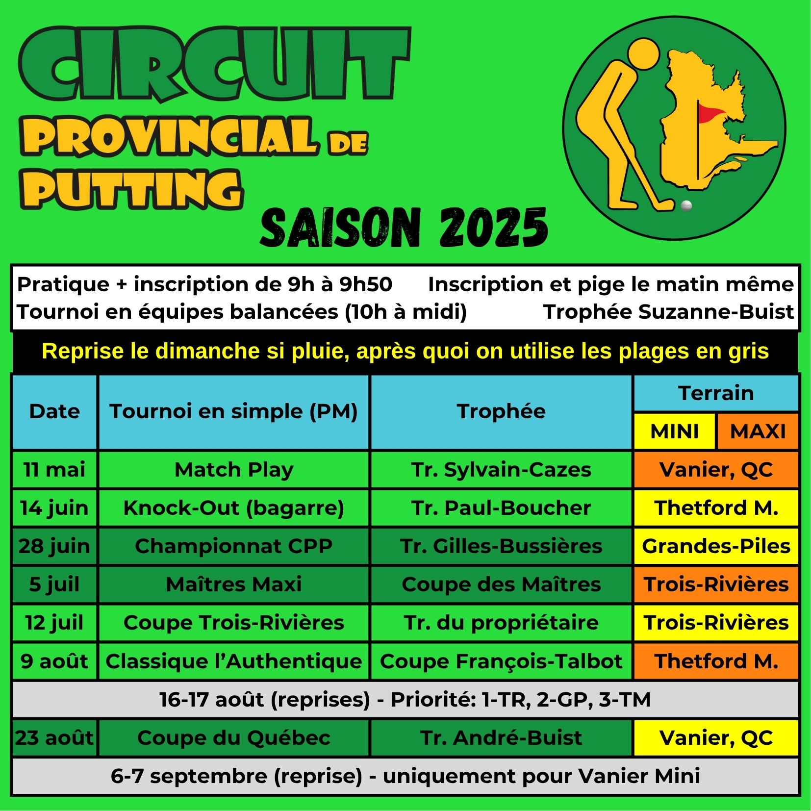 📝La saison 2025 a été marquée par un début de saison pluvieux et froid, provoquant des reports et remises. Durant le coeur de l'été, c'est plutôt la chaleur accablante qui est venue challenger les joueurs. Malgré tout, les assistances aux tournois en simple du CPP sont demeurées à 46 joueurs par tournoi. Pour une deuxième année consécutive, une moyenne de plus de 50 joueurs a été enregistrée.