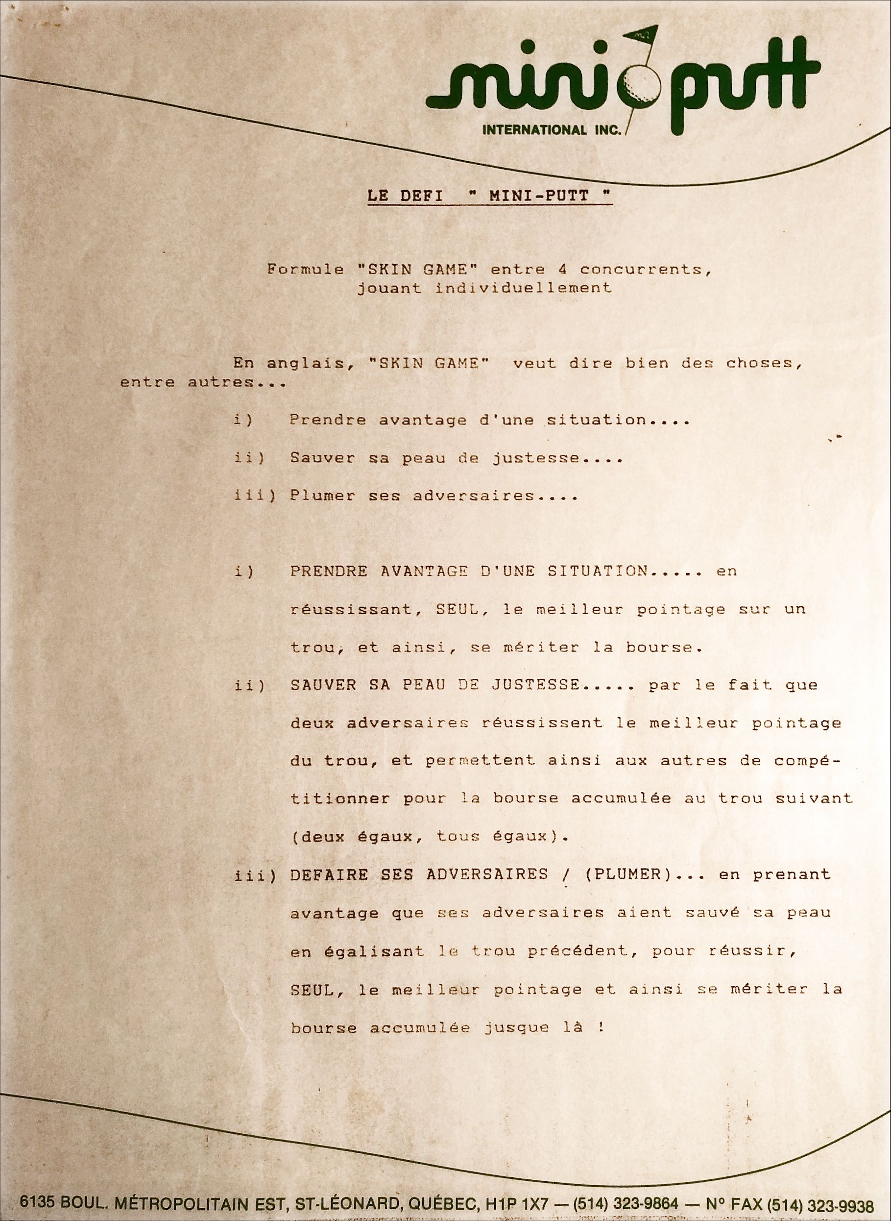 Instauration de la formule skins game