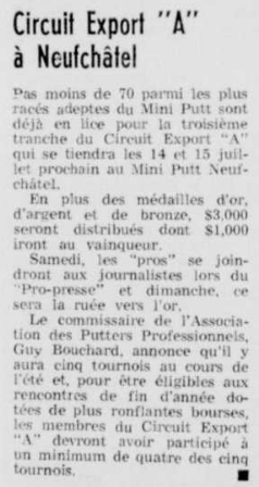 Mini-Putt: Export A (1973-07-15) à Neufchâtel gagné par Guy Bourgouin