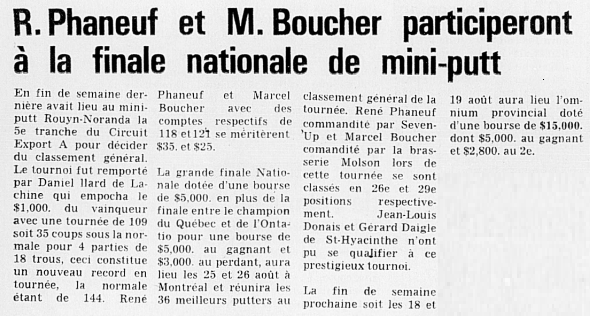 📍Noranda - Mini 📅dim 12 août 1973 💰Bourses totales: 3000$ 🧮 Statistiques