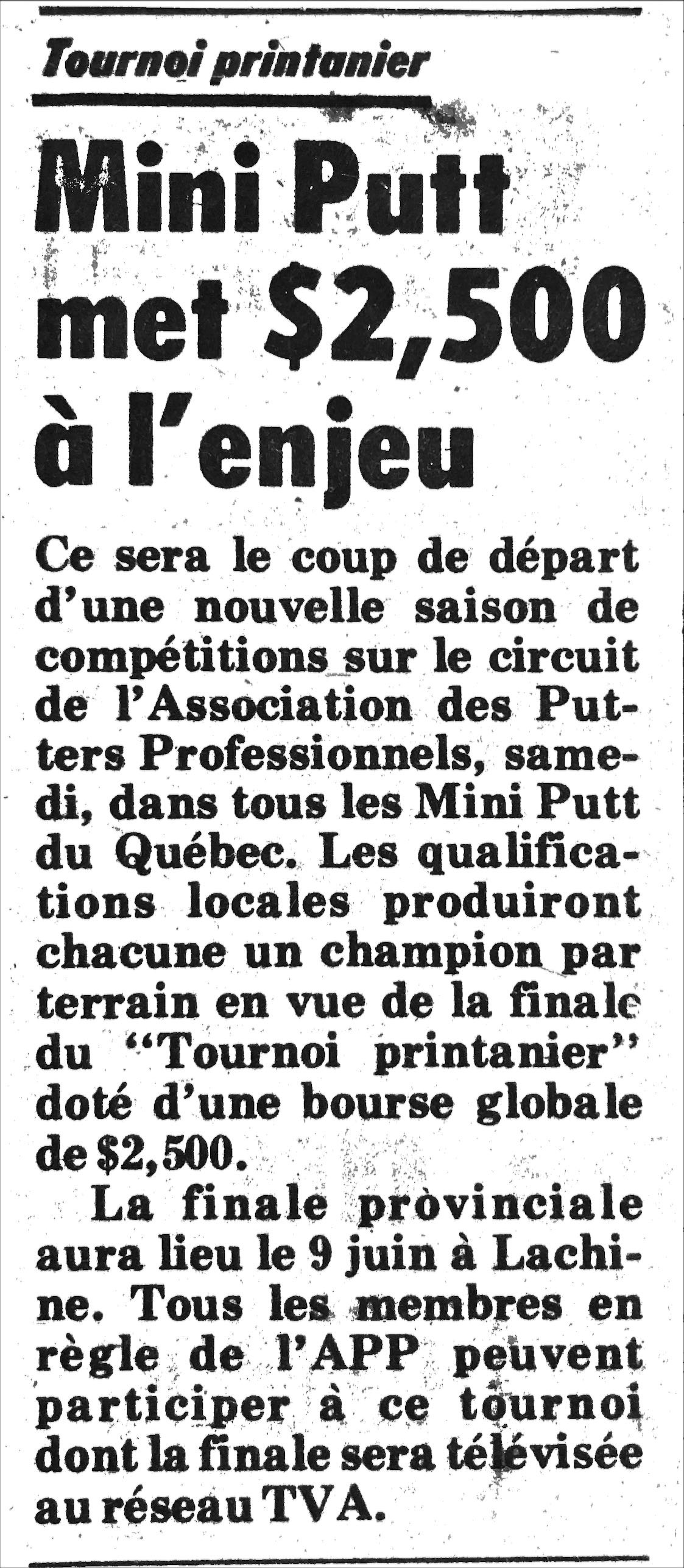 Journal de Montréal, 12 mai 1973: tournoi Printanier pour débuter la saison