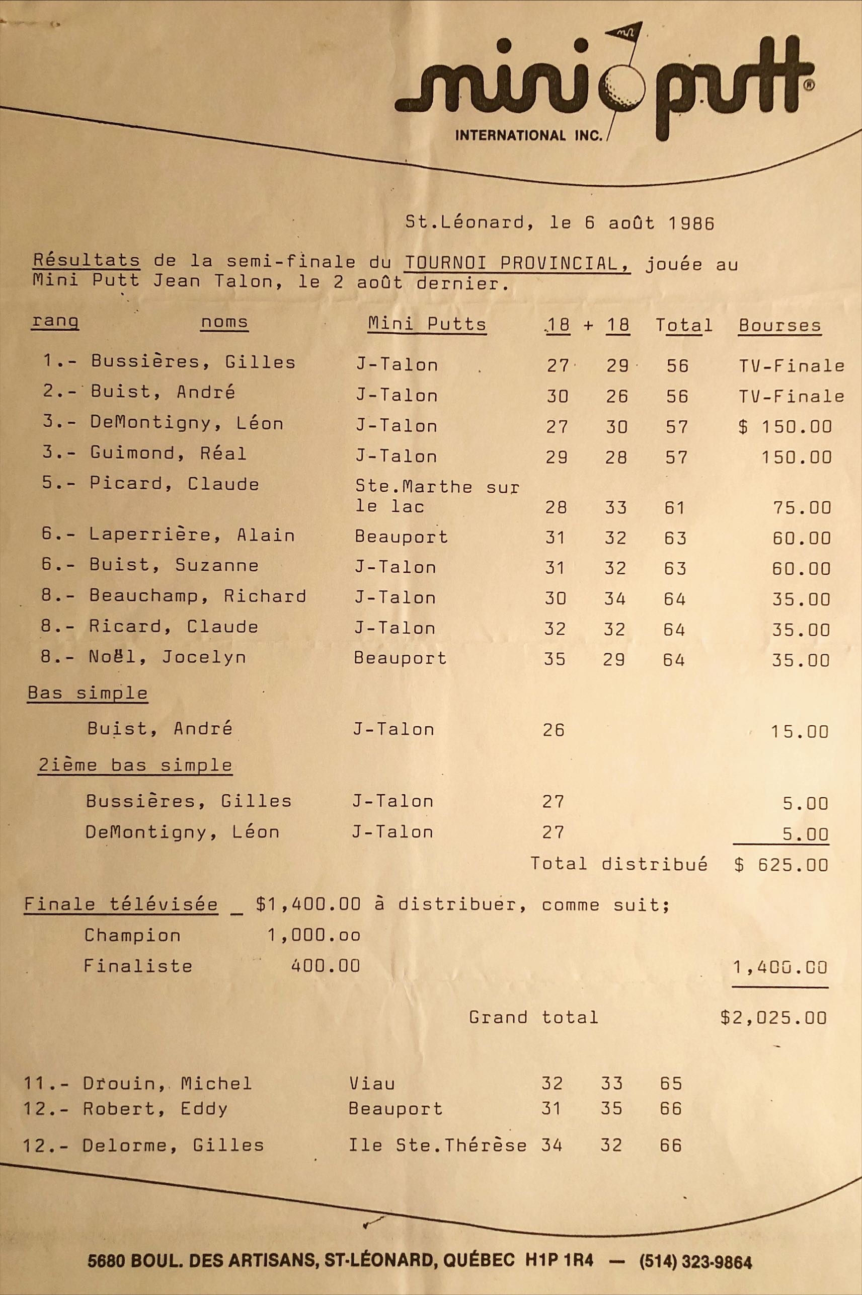 📝16 mai 1987: Finale télé (TVSQ), 1000$ au gagnant, 400$ à Gilles Bussières