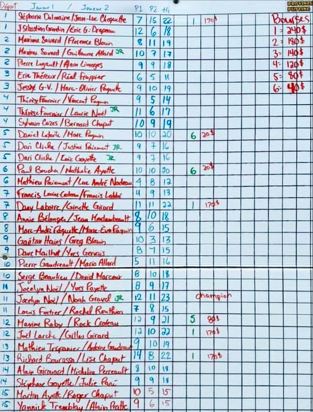 📝Plus grand nombre de joueurs depuis le 7 août 2021. Multiple égalité en 2e position. Citation épique de Daniel Letarte qui doit déposer son dîner : « je ne me rappelle pas avoir eu besoin de 2 mains pour afficher ma position! »
