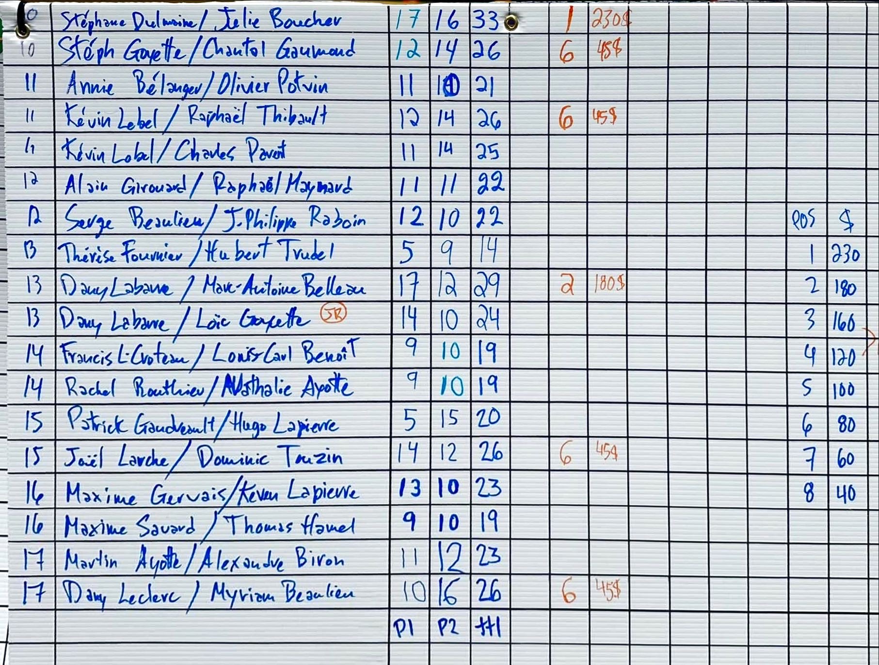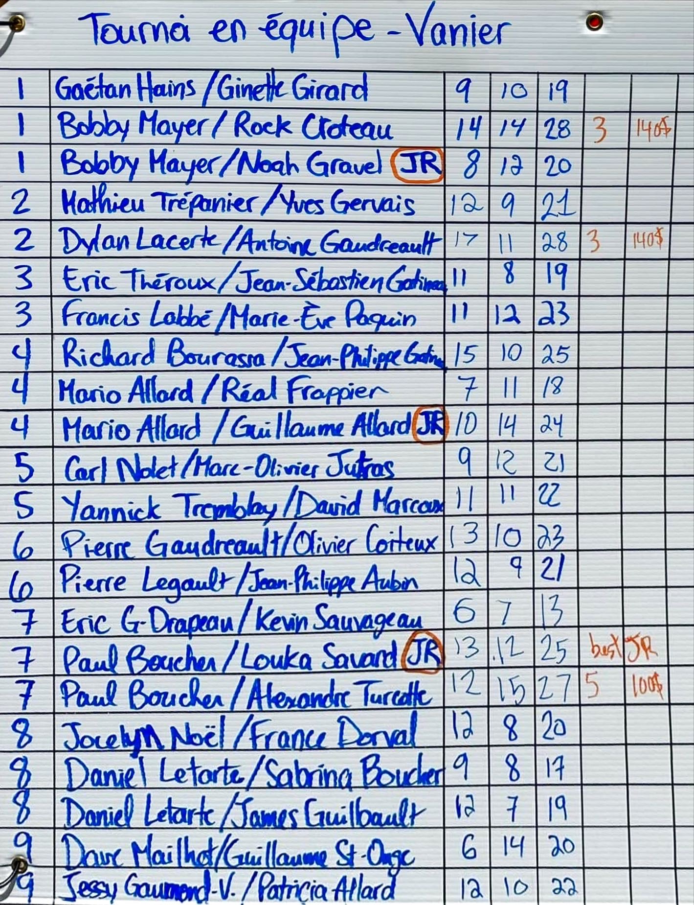 Rock Croteau, Bobby Mayer, Dylan Lacerte et Antoine Gaudreau à égalité au 3e rang