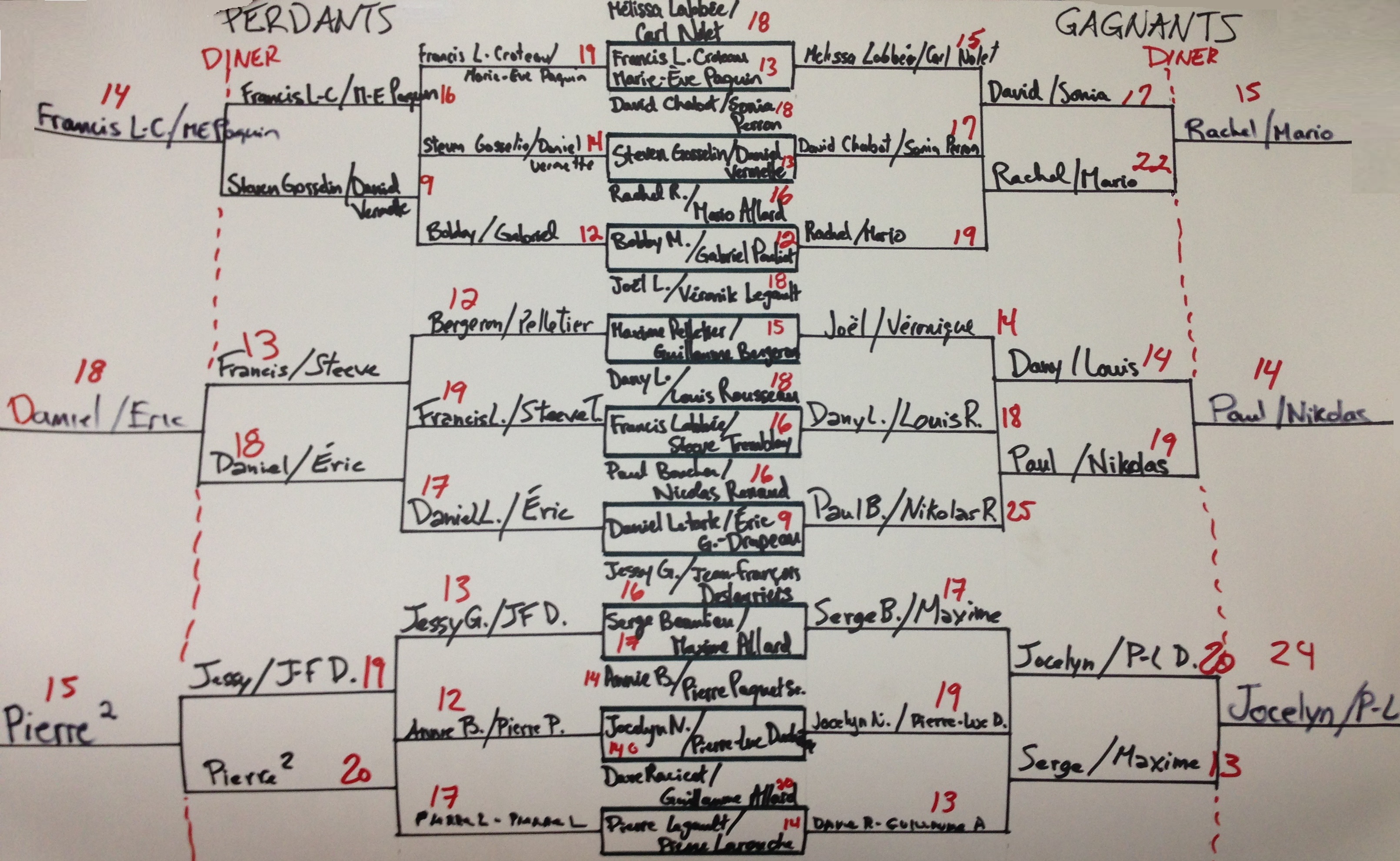2022-10-02 à Vanier: (côté consolation) En 3e position Marie-Ève Paquin et Francis Levine-Croteau, en 2e position Pierre Legault et Pierre Larouche, les gagnants sont Éric Gaudreault-Drapeau et Daniel Letarte